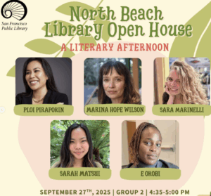 Reading at North Beach Library Open House, Sept 27th, 2025 by saramarinelli | Sep 18, 2025 | Events + News I am reading work in progress along with current and past Brown-Handler fellows at the North Beach Library Open House, Saturday, September 27th, 2025, 4:30 pm.